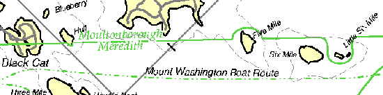 The USGS maps of 1956 are identical with current USGS maps. However, a slight adjustment needs to be made to the Moultonborough/Meredith town line. On USGS maps, the Moultonborough town line runs in a straight line from a stone monument in Center Harbor to the southwest tip of Long Island.