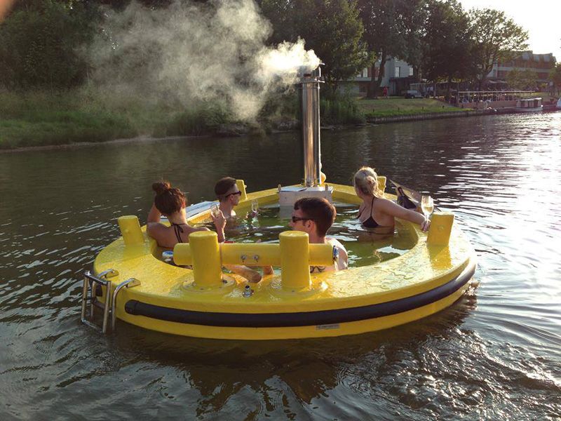 There used to be/is a wood hot tub on Cow that was configured the same way - a wood burning stove half submerged in the water to provide the heat. The stove had a wood fence around it to prevent people from getting burned.