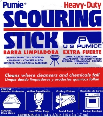 Try using the "Pumie Pumice Scouring Stick"...you can find it at Lowes...hope this video helps!