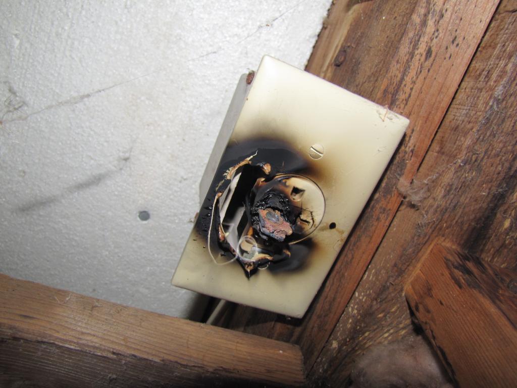 This is what happened to the cord on the last heater.....See what I mean? This never tripped the breaker! Yikes!