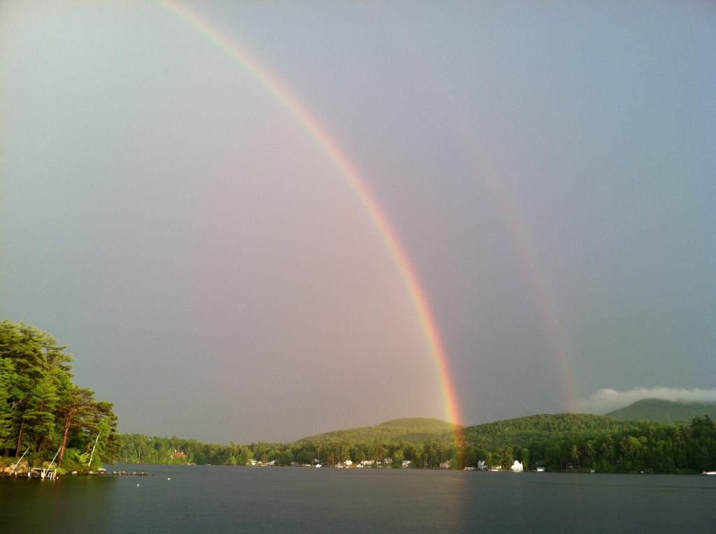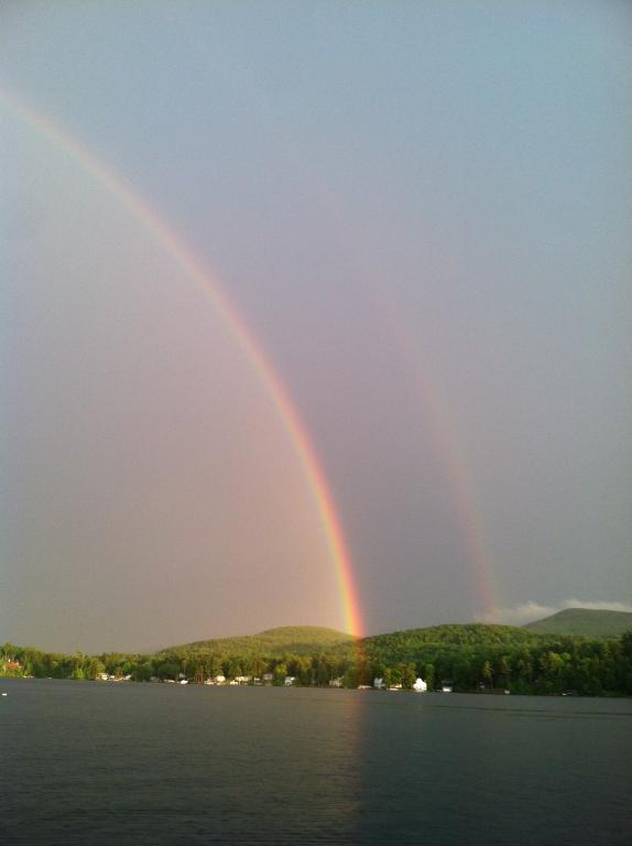 We caught a spectacular view of 2 rainbows looking from the south side of Sleepers Isl. near WAM entrance towards Minge Cove. If you look close enough you can actually see where one of the rainbows touches the ground. One of the most defined rainbows I've ever seen. I would like to show the pics to the lucky homeowner. I'll be sure to bring a shovel to dig for the pot 'o gold!