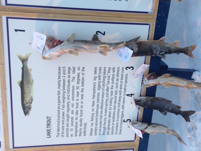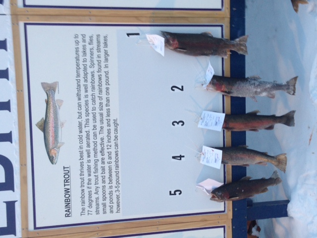 The Lake Trout and Rainbow Trout boards from the end of the day Saturday. The winning laker was 10.5lbs!!