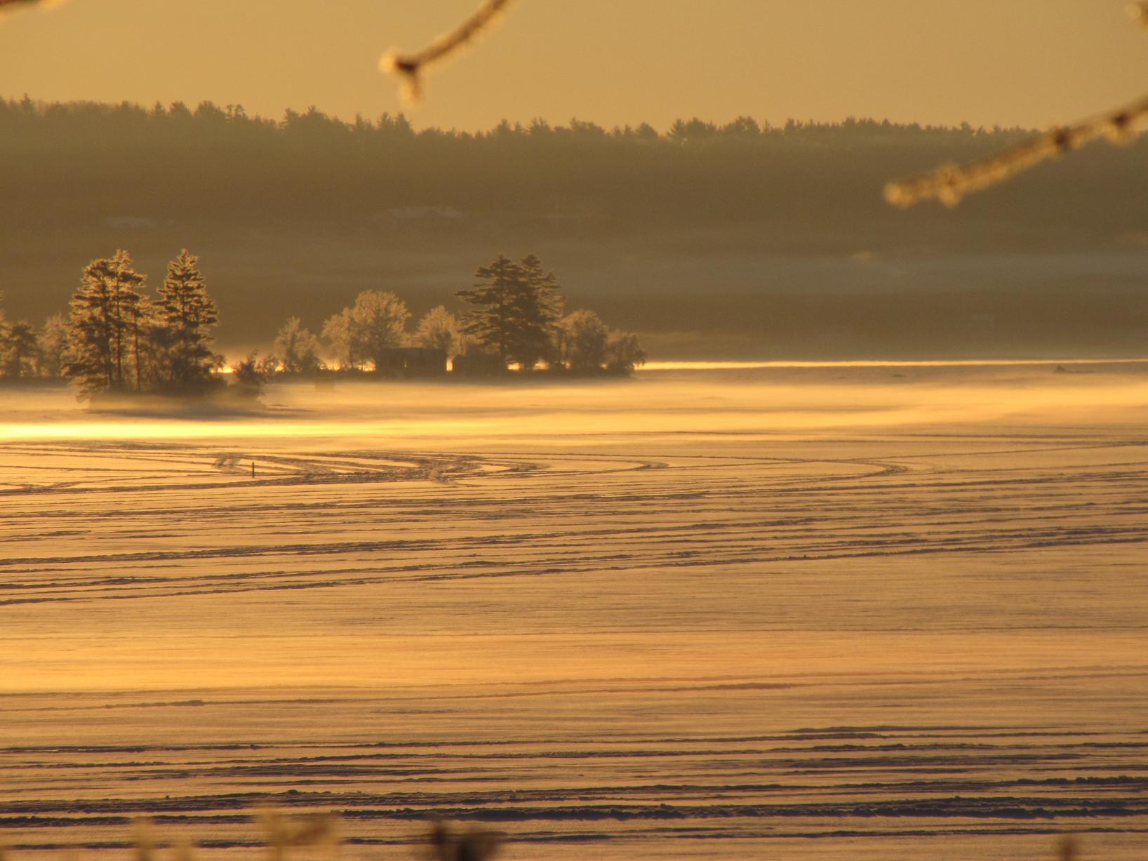 The air temperature is currently 0 degrees at the lake in West Alton. I took this photo around 8am looking out at Sleepers, Cub, Treasure and Rattlesnake Islands. Cub is the island in the center of the photo. The icy fog floating above the ice is very pretty.