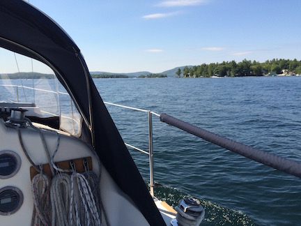 Right out of Wolfeboro Bay and we were in the Broads. Absolutely beautiful sailing. Rattlesnake Island was on our port side. And believe it our not there was a southeast wind that would send us up the lake!