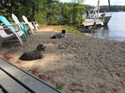 Here are our two shih tzu pups enjoying a perfect day of swimming, patrolling the beach, notifying us if boats were not observing the No Wake zone in front, and generally lolling about.