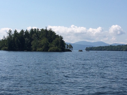 Sunday morning greeted us with the three H's. Hazy, hot and humid. Not a stick of wind either. Luckily there were no thunderstorms predicted so we decided to head back out into the big lake to one of our favorite anchorages...Ragged Island. (Also owned and managed by the Lakes Region Conservation Trust)