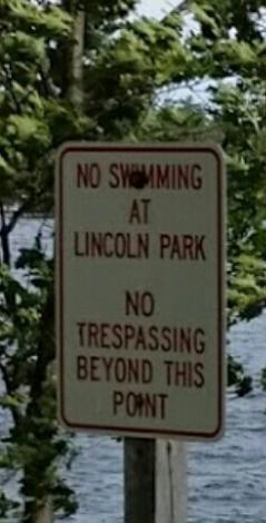 There's one photograph of beautiful Lake Winnipesaukee that's just a doozy of a photo; it shows the lake, islands, and big water view with the Ossipee Mtn's in the back; shot from Town of Gilford's 1-acre public Lincoln Park, and the town has a 'no trespassing' sign at the water's edge, blocking access to the water.